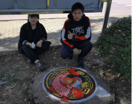 来自计算机科学与技术学院的画手李泽斌表示,“绘画井盖不仅让校园整体变得更加靓丽,也促进了校园的文明和谐。画井盖既是对井盖的一种保护,上面的内容也是一种宣传。绘画过程虽然有些辛苦但还是有价值的,也能给同学们带来不一样的视觉冲击,当绘画完成时,我们都觉得很有成就感。”