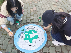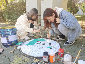 此次井盖涂鸦活动所使用的材料均是防雨环保材料,在绘画的过程中,以小组为单位,围坐在井盖旁,分工合作,你来勾勒,我来涂色,大家都用心为井盖装扮一番。当天天气晴好,午后的阳光也比不上画手们的热情,他们在太阳底下,专心地沉浸在自己的绘画世界里。画手们先将井盖用抹布清洗一遍,然后上一层底色,又用记号笔勾勒出大概的线条,最后涂上颜料。同学们将简单、时尚、正能量的元素融入到画面中,用艺术形式扮美了校园。看着自己的作品从无到有、慢慢成型,画手们都说很有成就感,更增添了自己对校园的无限热爱。