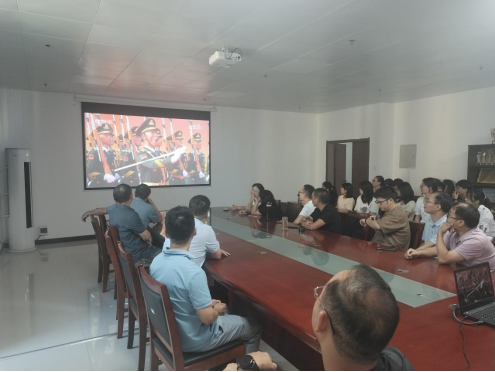 与此同时,学院组织在校老生集体观看阅兵仪式。在学院会议室里,同学们和老生聚精会神,共同见证这一历史性时刻。当国歌奏响、国旗升起时,现场全体师生自发肃立,齐声高唱,激昂的爱国情感在心中激荡。阅兵式所展现出的国威军威,以及背后蕴含的抗战历史记忆,深深触动了在场每一位学子。