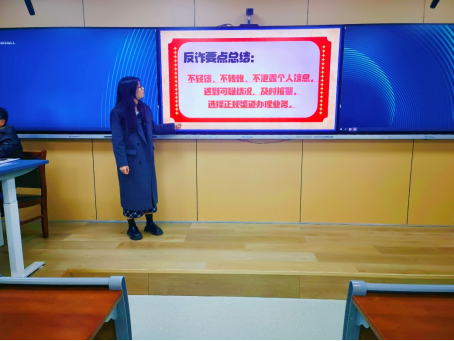 (通讯员:周坤)为进一步提升学生防范电信网络诈骗的意识和能力,筑牢校园安全防线,12月21日晚,必赢亚州242.,net组织各班级在教学楼二栋开展了“防诈于心,反诈于行”主题班会。全体学生通过案例学习、互动讨论、知识普及等形式,深入了解电信诈骗的作案手法与防范技巧,取得了良好的宣传教育效果。