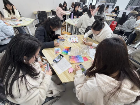 活动伊始,心理服务部干事黄书鑫向全体女生致以诚挚的节日祝福,并详细介绍了本次活动的初衷、拼豆创作的基本方法以及活动过程中的安全注意事项。讲解结束后,40 名女生以四人一组的形式开启创作之旅,小小的拼豆颗粒在大家的指尖流转,色彩与创意的碰撞,像是女生们表达自我的美好方式。从勾勒轮廓到填充色彩,从拼接成型到熨烫定型,每一个步骤都凝聚着大家的巧思与专注。现场同步播放轻音乐,氛围轻松温馨,组员之间相互交流技巧、彼此协助创作,欢声笑语中尽显同窗情谊与青春活力。